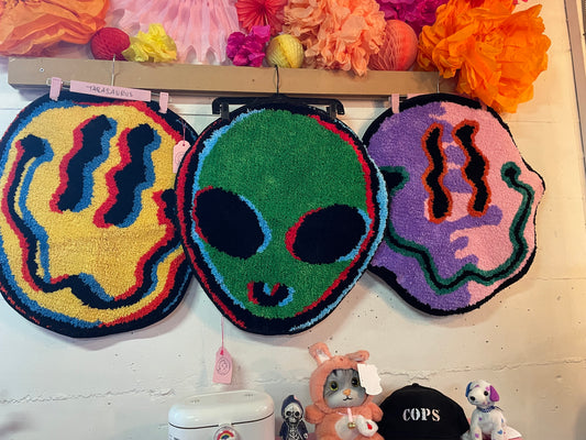 👽 Trippy Green Alien Tufted Rug Art / Mat