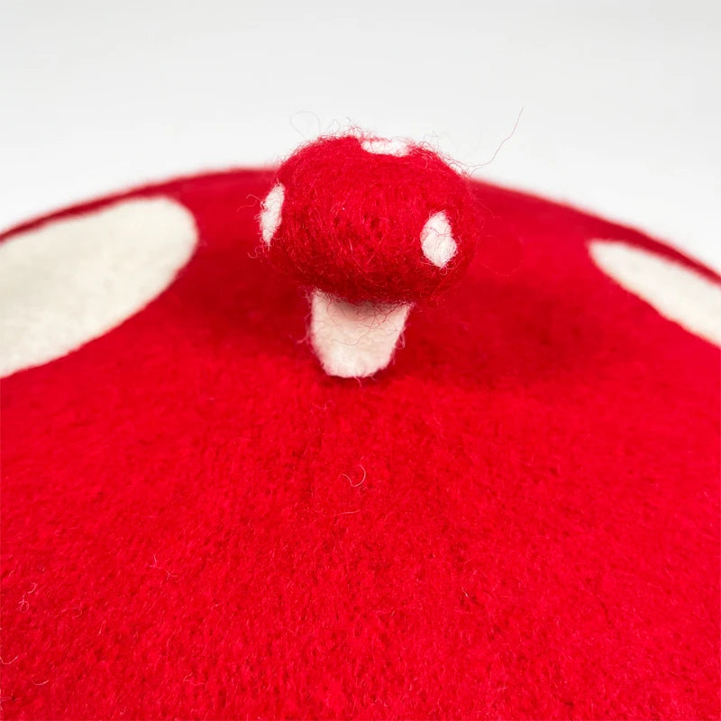 Stay warm and adorable in this handmade wool beret with charming red and white mushroom details. Designed for year-round wear, this playful cap brings kawaii charm to any casual outfit. Cozy, quirky, and endlessly fun—the perfect accessory for mushroom lovers and fashion rebels alike.