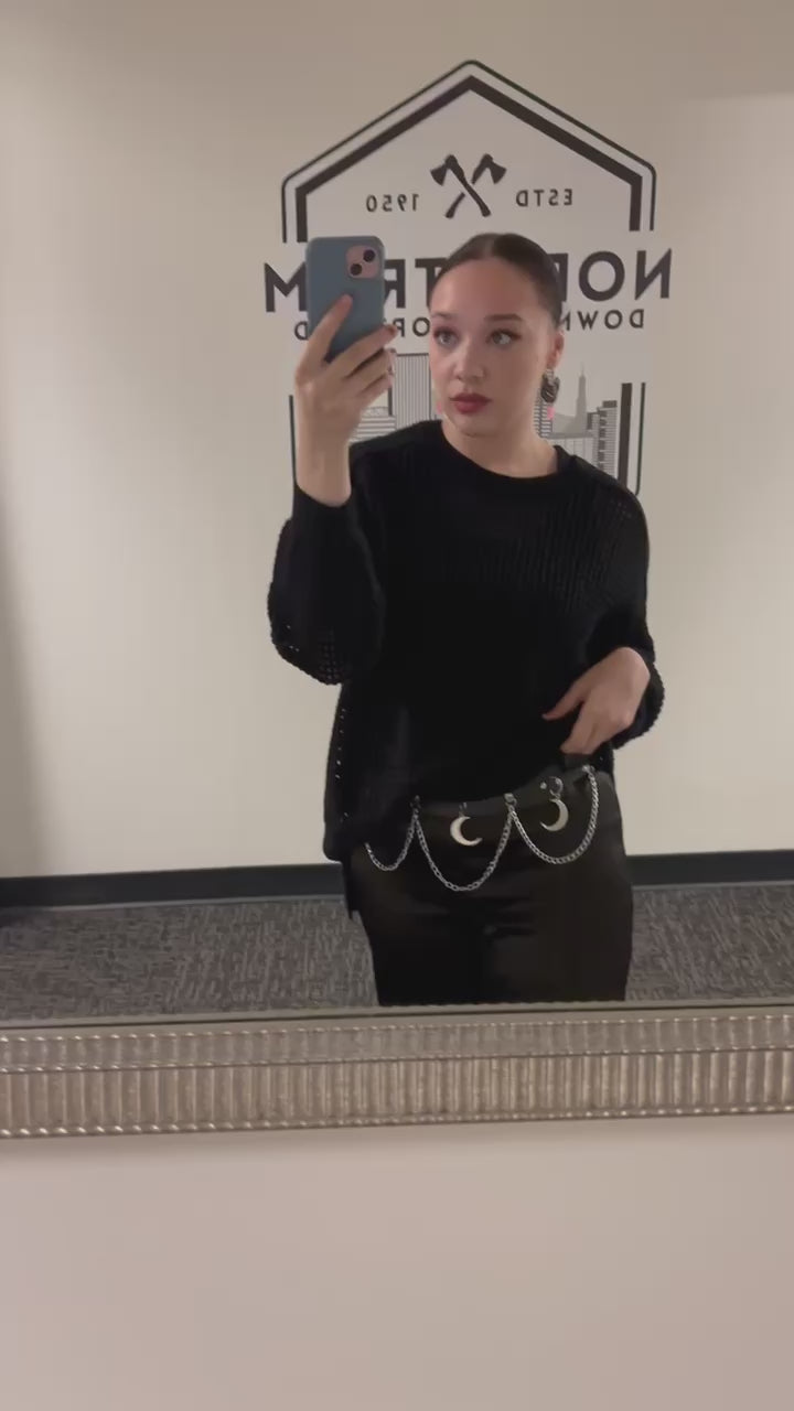 Introducing our must-have accessory for any goth, the 🌙 Moon Chains black waist belt 🌖 ! Made with durable imitation leather and sleek stainless steel, this belt is both stylish and edgy. Perfect for adding some lunar flair to any outfit. 🌕