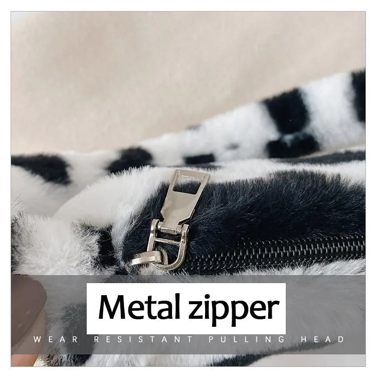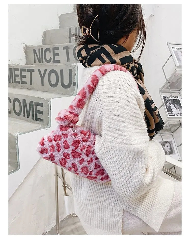 Cuddle up to style with these adorable plush shoulder bags featuring bold cow, leopard, and zebra prints. Perfect for winter adventures, these fluffy underarm totes keep your essentials close while adding a wild touch to any outfit. Soft polyester lining ensures your belongings stay cozy and protected. Whether you're grabbing coffee or hitting the town, these pint-sized purses deliver maximum personality in a compact package.