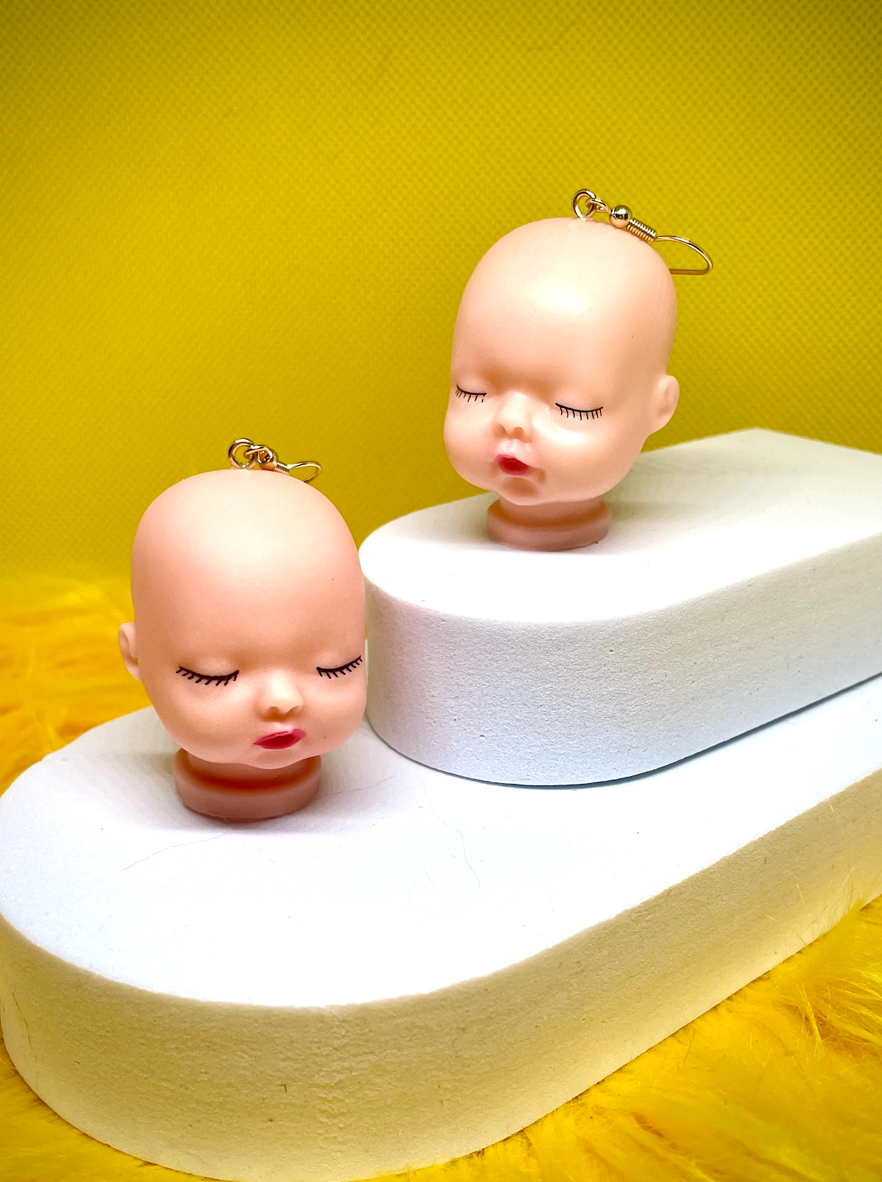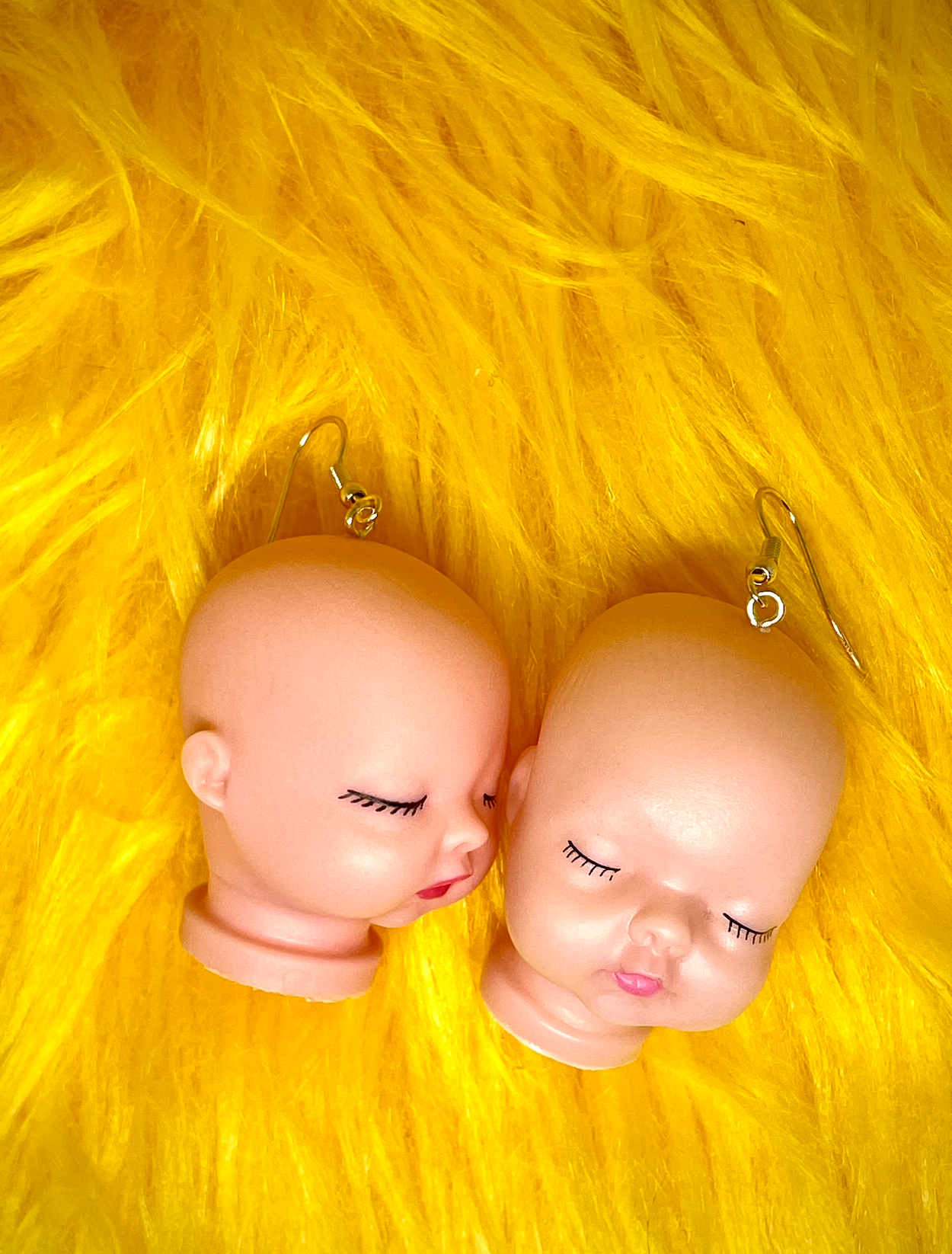 Be the talk of the town with these baby doll head earrings! Made of rubber and stainless steel, these babies will outlast us all. Give 'em a try! They're guaranteed to make some heads turn. ;}