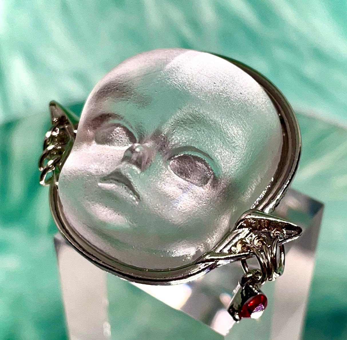 Get ready to rock your look with the JAVRICK oversized baby face ring! Made of metal, zinc alloy, and resin, this cool, goth, punk statement piece will add an extra edge to any outfit. Don't be afraid to show off your playful side with this unique ring! Get ready to elevate your style with the JAVRICK oversized baby face ring! Made of metal, zinc alloy, and resin, this funky, alternative ring will add a touch of attitude to any outfit. Don't be scared to embrace your playful personality with this one-of-a-kind piece!