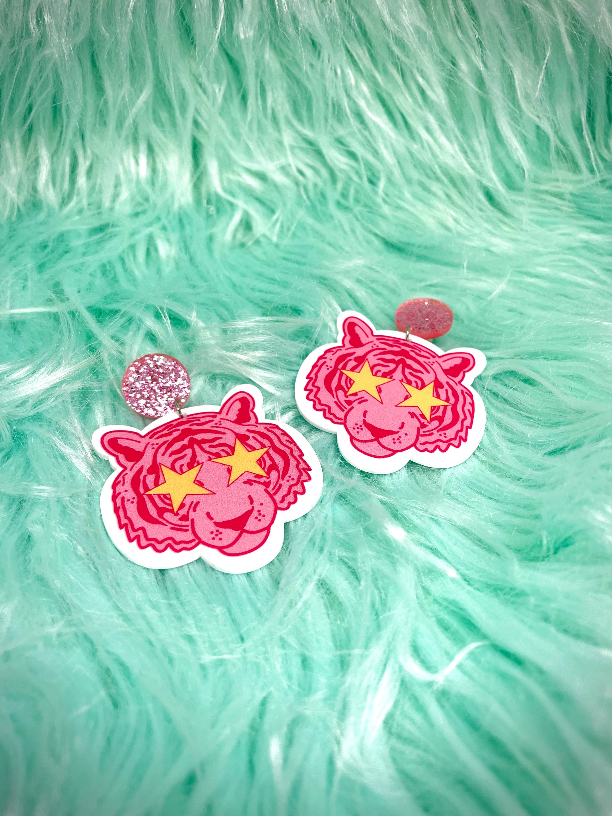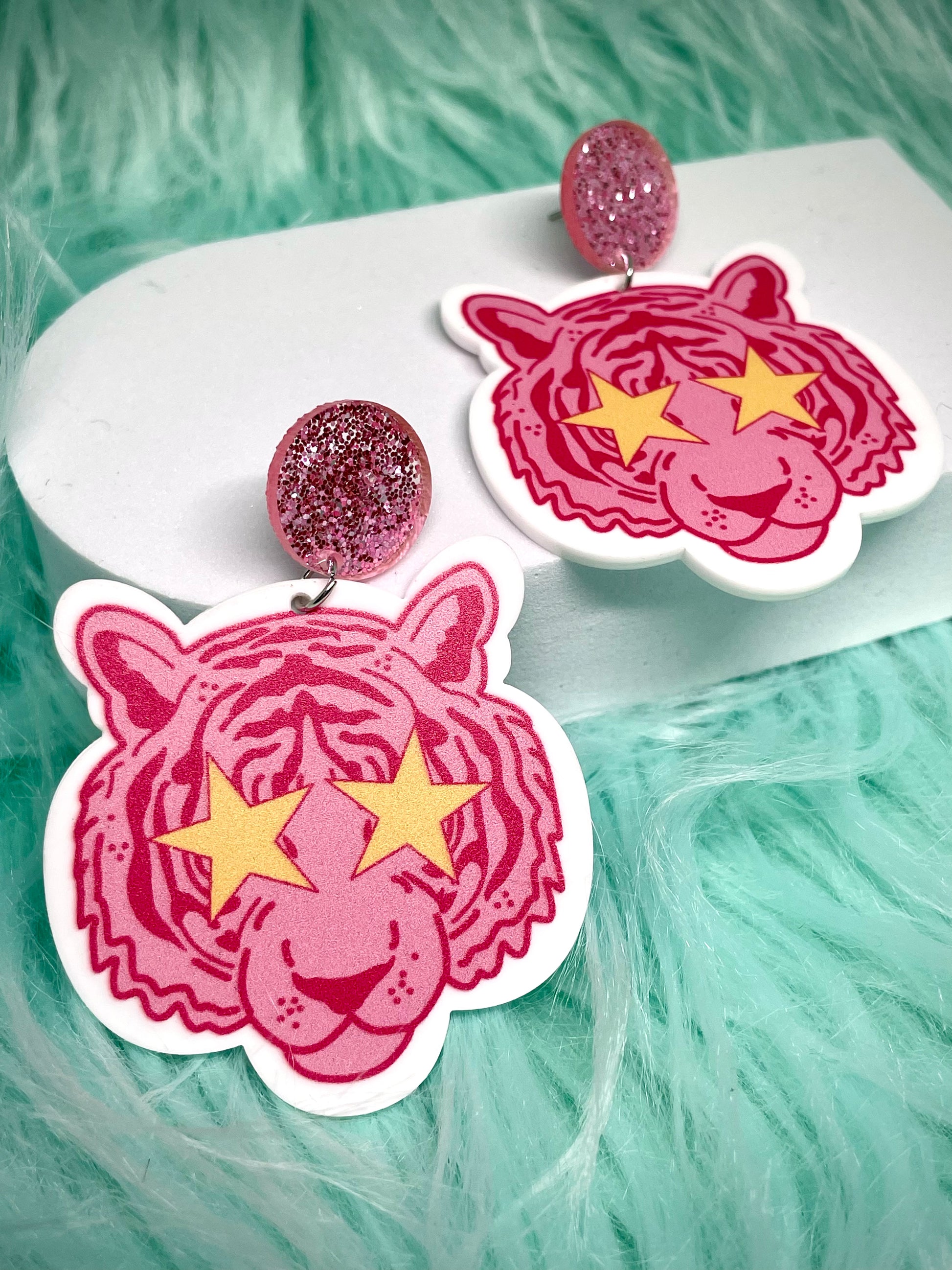 An acrylic, glittery pink tiger with stars in her eyes - the purr-fect combination of fierce and fabulous!