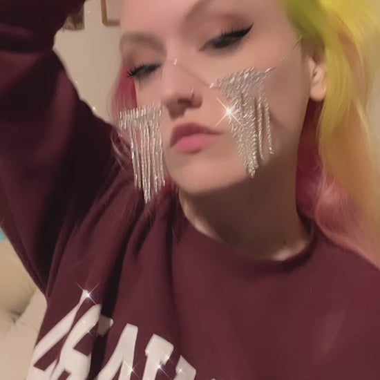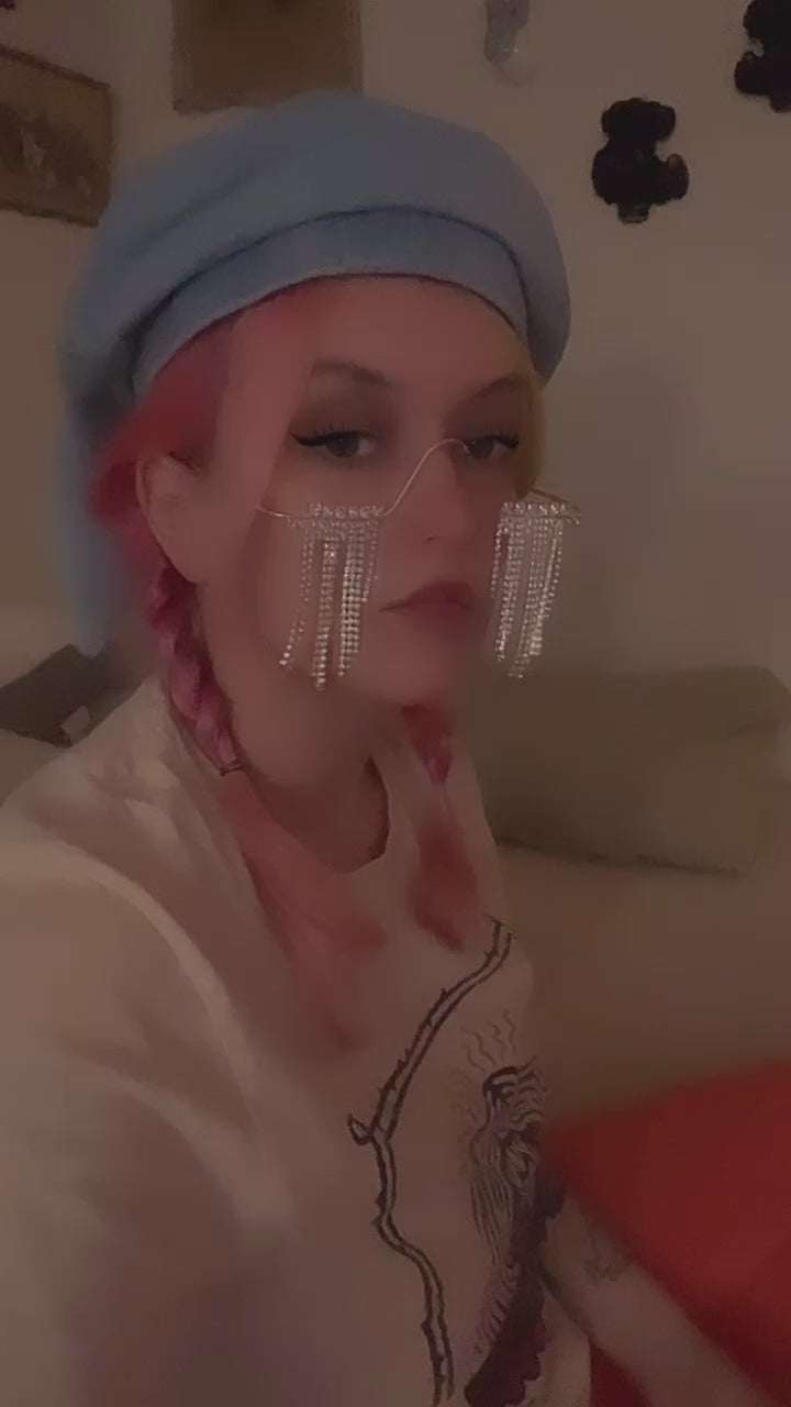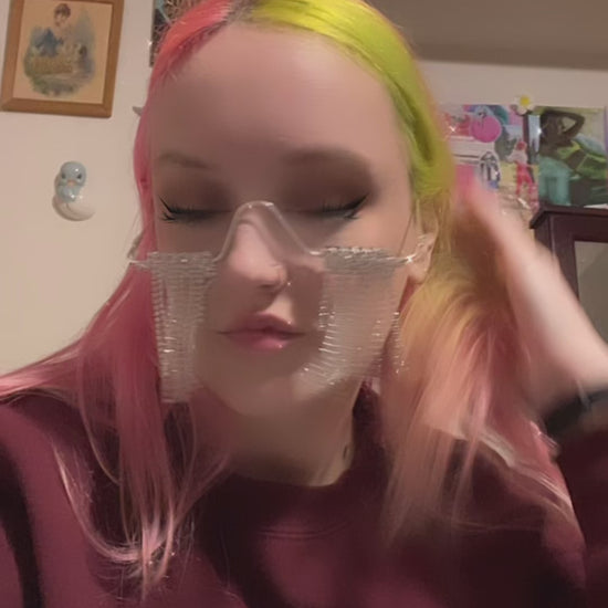 Be daring and make a statement with these "Frosting Shades" Rhinestone Half Frames - perfect for the risk-taker who loves to stand out! Sparkling with luxury and designer flair, these frames are adorned with geometric rhinestones that add a touch of dazzling charm to your face. (Which may or may not help throw off facial recognition). Proudly made in the USA, these frames are the perfect blend of bold and chic. Are you ready for the challenge? Add a touch of adventure to your look with "Frosting Shades"!