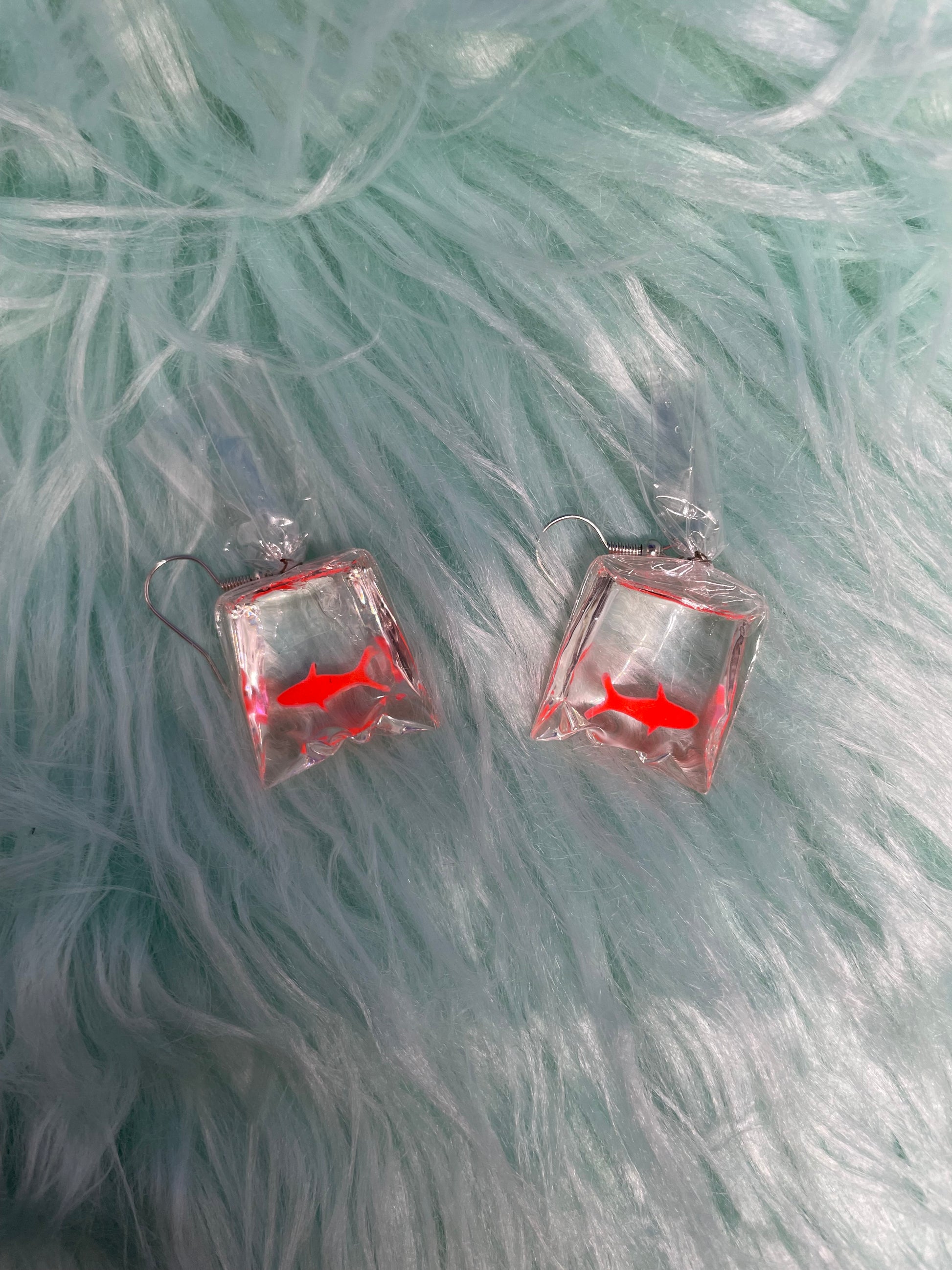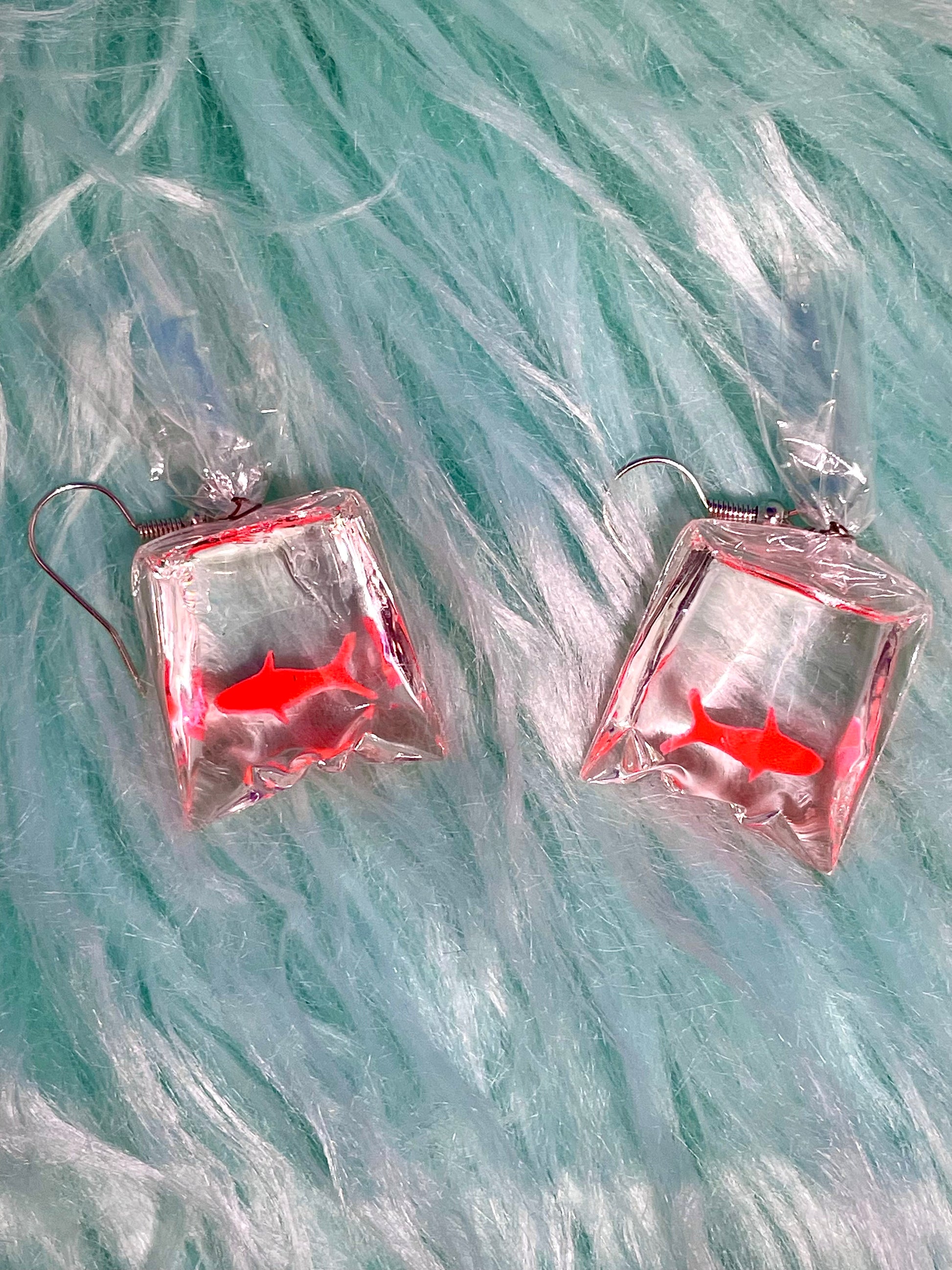 Get ready to receive compliments on your unique sense of style with these cute Goldfish Baggie earrings! Made from resin, steel, and a thin plastic film, they are a one-of-a-kind addition to your collection. Enjoy the playful and quirky vibes these earrings bring to any outfit!