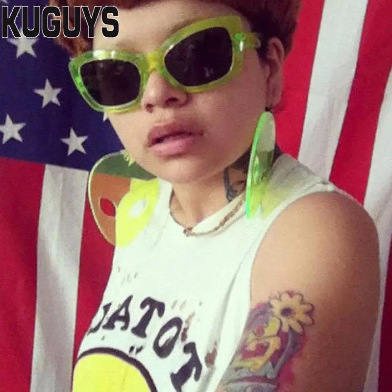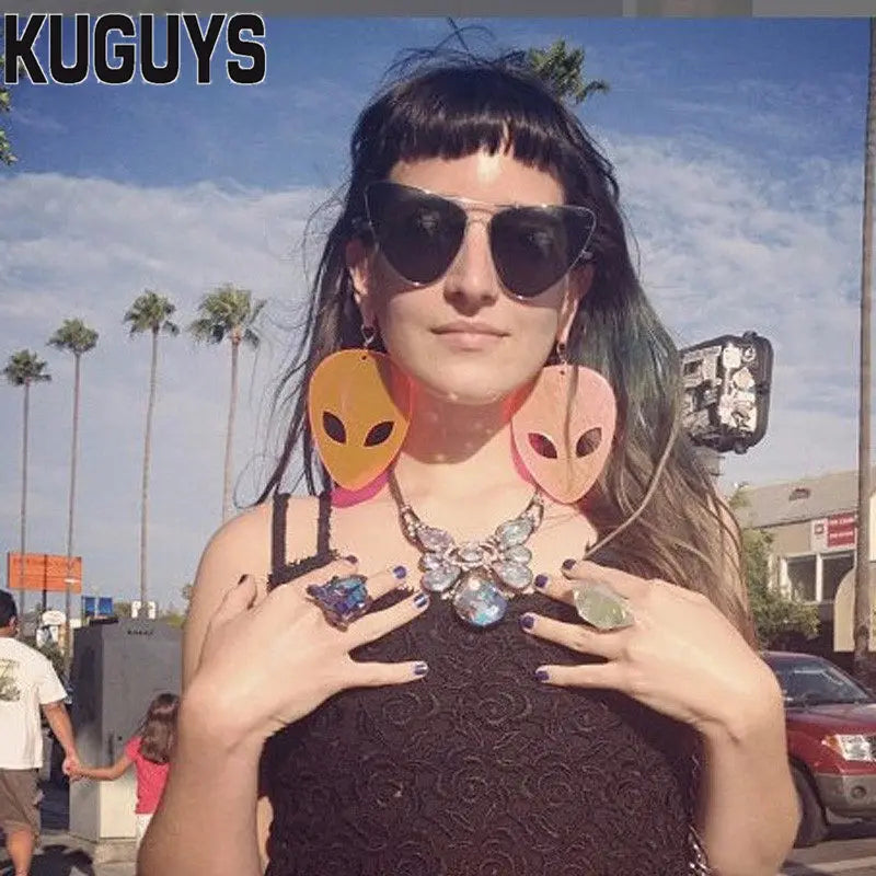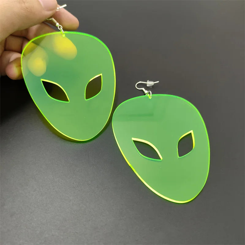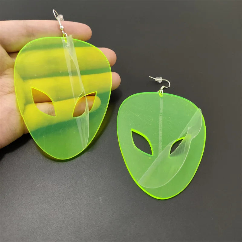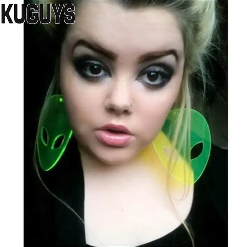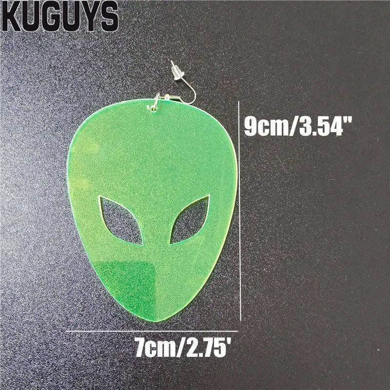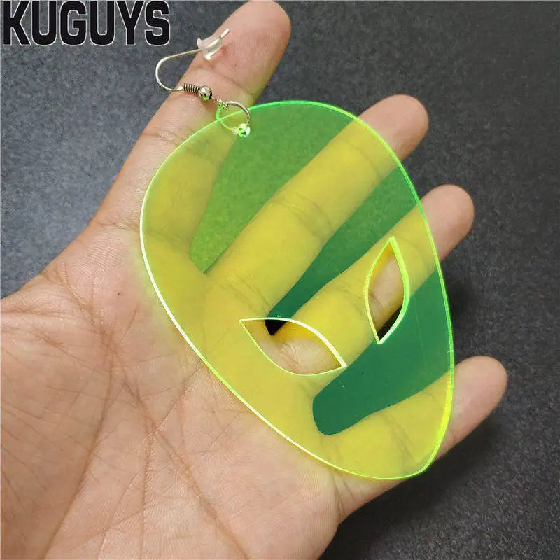 Ignite your bold and daring spirit with these Acrylic Earrings from KUGUYS! Featuring a unique neon pink and green design, these earrings are perfect for those who love taking risks and standing out. Made with durable acrylic and zinc alloy, they are the perfect accessory for any hiphop or rock-inspired outfit. Don't be afraid to let your inner alien shine with the "Take Me to Your Leader" Acrylic Earrings.